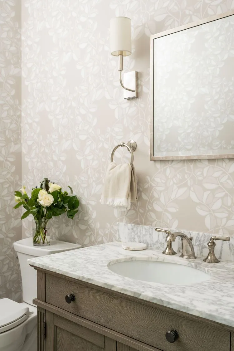 Wallpaper is no longer reserved for the powder room—though that’s a great place to start! In 2025, bold, textured, or subtly patterned wallpaper is being used to create contrast and interest in bathrooms of all sizes. It’s a great way to add a personal touch or bring in color and pattern without committing to tile or paint. From soft florals to dramatic geometrics, wallpaper makes the space feel intentional, curated, and a little unexpected.