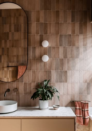 Incorporating natural elements is key to that warm, organic modern feel. Think wood vanities, exposed stone, handmade tiles, brass fixtures, and even greenery. These touches help create a connection to nature, adding texture, warmth, and authenticity to your space. We love bringing in plants (when natural light allows), or using real materials that age beautifully over time. Natural materials also tend to be more durable and eco-conscious—a win-win in design.
