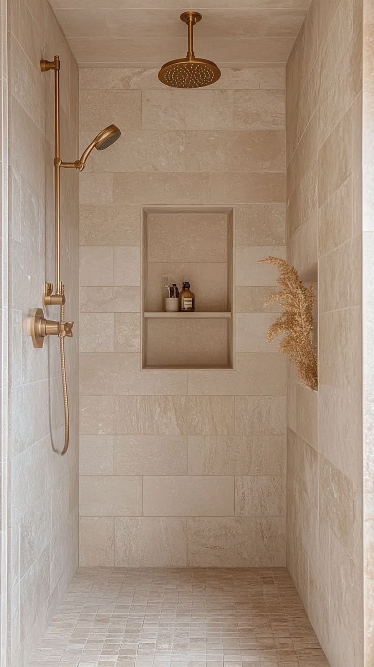 Earth-toned tile is one of the biggest trends in bathrooms for 2025—and it’s not going anywhere. Think warm beige, soft cream, dusty terracotta, and even touches of mauve and clay. These hues create a soothing, grounded feel that pairs perfectly with natural woods and stone finishes. At ENE Builders, we love using these palettes to craft a warm and organic look that still feels elevated. Whether used on the floor, walls, or in the shower, earthy tiles invite a sense of calm and comfort that’s perfect for a bathroom retreat.