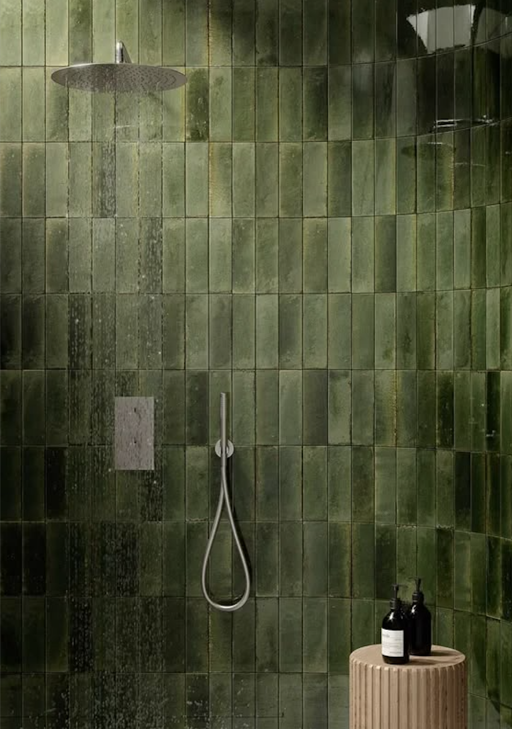 A subtle design move that has a major impact—taking tile all the way up to the ceiling. It instantly makes a space feel taller, sleeker, and more intentional. Whether it’s subway tile, zellige, or bold patterned ceramic, wrapping the walls in tile brings polish and continuity. We especially love this look in shower enclosures or around soaking tubs where it really makes the architecture shine.