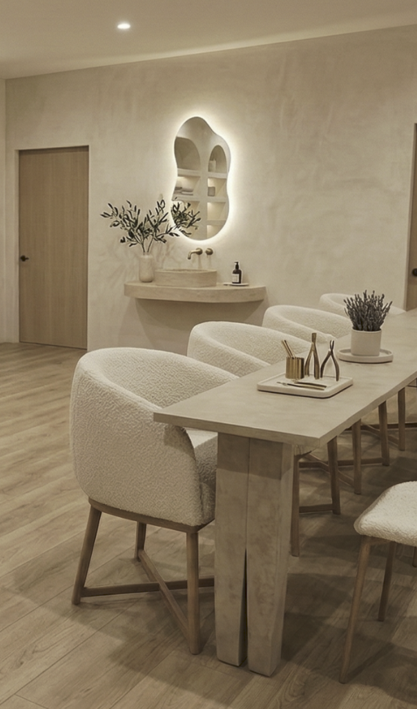 The result is a modern, minimalist nail salon in Pasadena that blends functionality with a spa like atmosphere designed not only to look beautiful, but to support business growth, client retention, and daily efficiency.